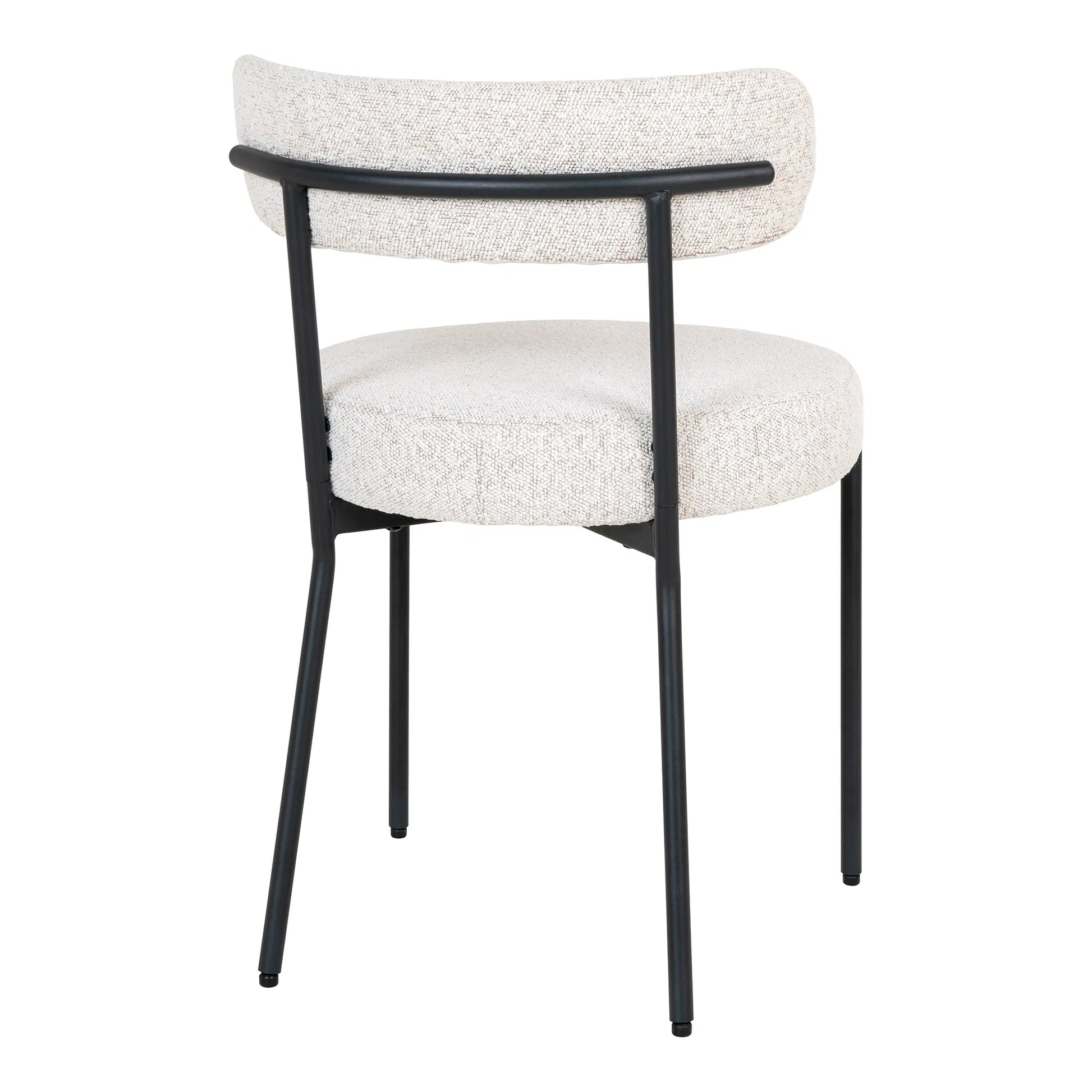 Valgomojo kėdė „Badalona“ – tai vieta, kur aukštoji mada susitinka su architektūriniu dizainu. Aptraukta geidžiamiausiu sezono audiniu – baltuoju „Bouclé“ – ši kėdė į jūsų valgomąjį įneša jaukų, „debesį“ primenantį taktilinį pojūtį. Minkšta, kilpinė apmušalų tekstūra sukuria ryškų kontrastą su grakščiomis, matinėmis juodo metalo kojomis, suteikdama kėdei rafinuotą ir neabejotinai kviečiantį įvaizdį.